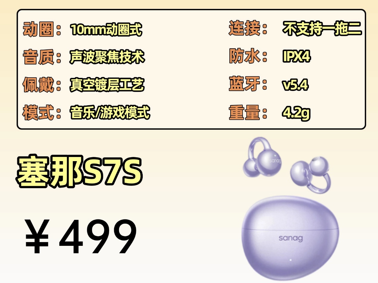 4. SANAG塞那S7S 耳机耳夹式蓝牙耳机