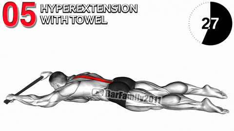 动作5:俯卧毛巾背伸