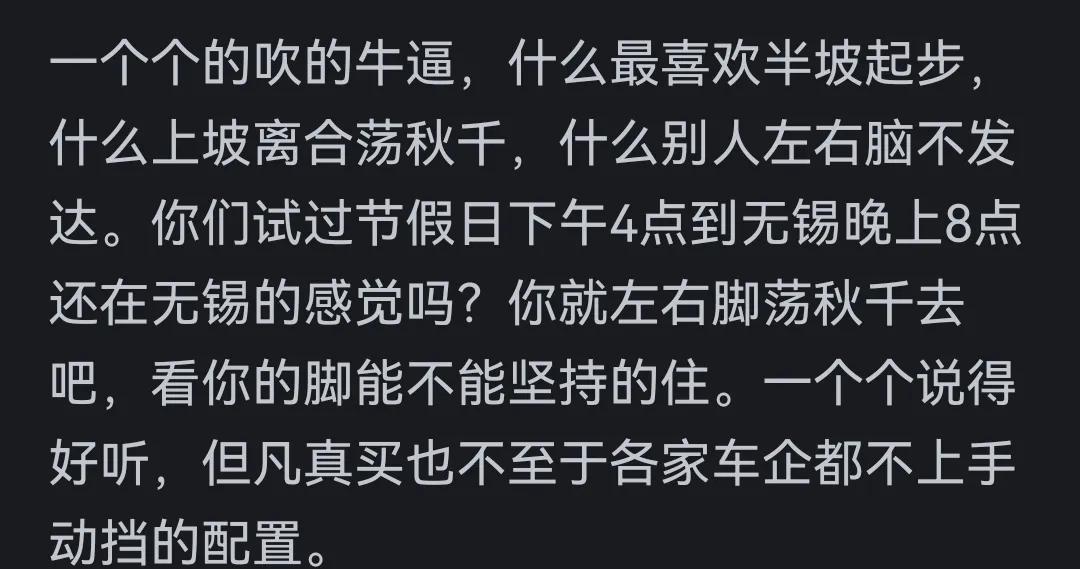 当然,我并不是说手动挡就一定比自动挡好。 选择哪种变速箱, ultimately 取决于个人的需求和喜好。 如果你更注重驾驶的便捷性和舒适性,那么自动挡无疑是更好的选择。但如果你追求的是驾驶的乐趣和操控感,那么手动挡绝对值得一试。