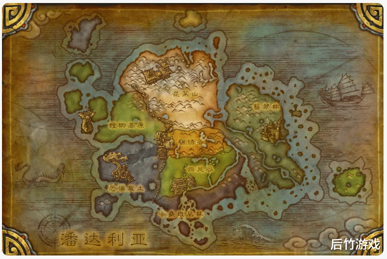 - 苍翠的新大陆:迷踪岛(1-10级)、翡翠林(85-86级)、四风谷(86-87级)、卡桑琅丛林(86-87级)、昆莱山(87-88级)、螳螂高原(88-89级)、恐惧废土(89-90级)、锦绣谷(90级)。