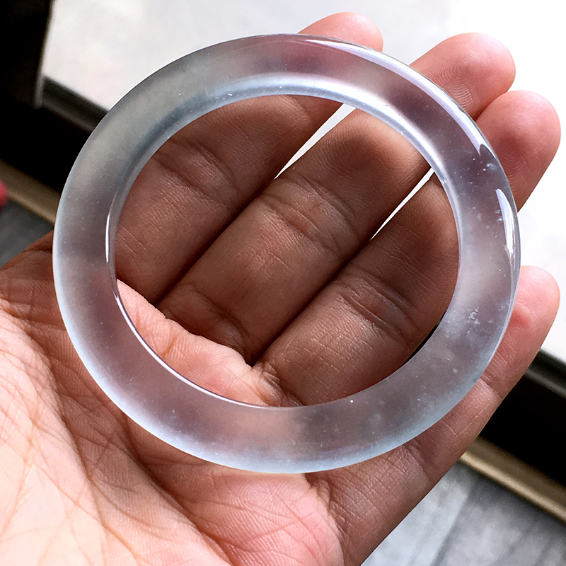 在我面前的是一枚色泽柔和的手镯。在那均匀有规律的圆弧线条中,显露着一种久远而淳朴的美感。翡翠把自然之美留给了我们,她们的与生俱来的和谐与温润,在那无尽的岁月中一直陪伴着。