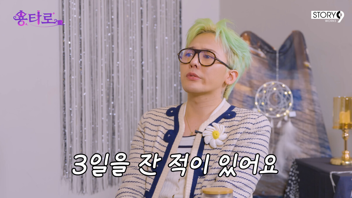 GD出演由李龙真主持的Youtube综艺「龙塔罗」,节目中李龙真会借由算塔罗来引导嘉宾们面对目前以及未来的烦恼,而在算塔罗的过程中,李龙真表示GD是一位需要拥有充分的休息时间后才会再往前进的类型,GD也附和回应道:「我是很需要睡眠的人。」并透露自己曾经连睡过三天,让李龙真惊讶不已!