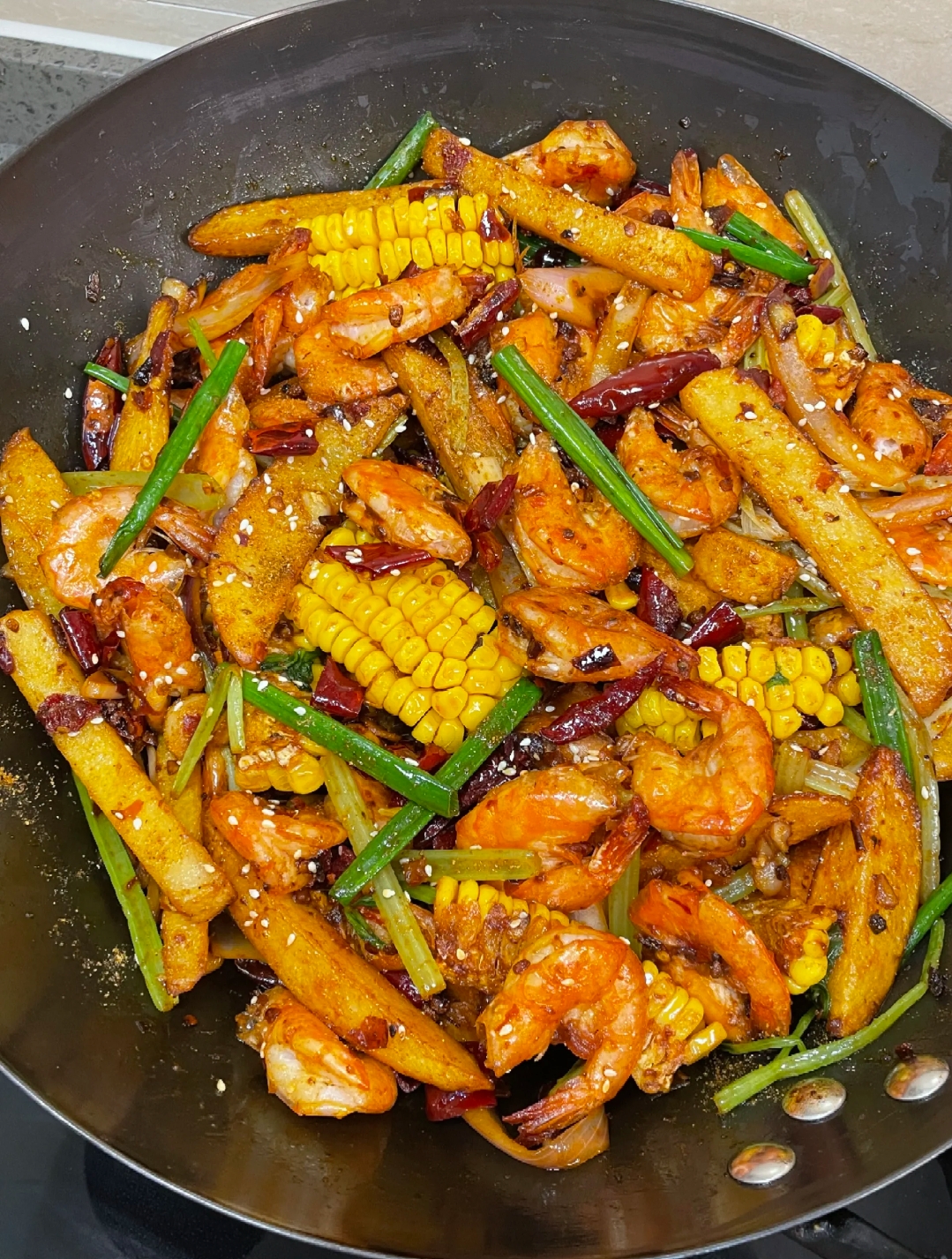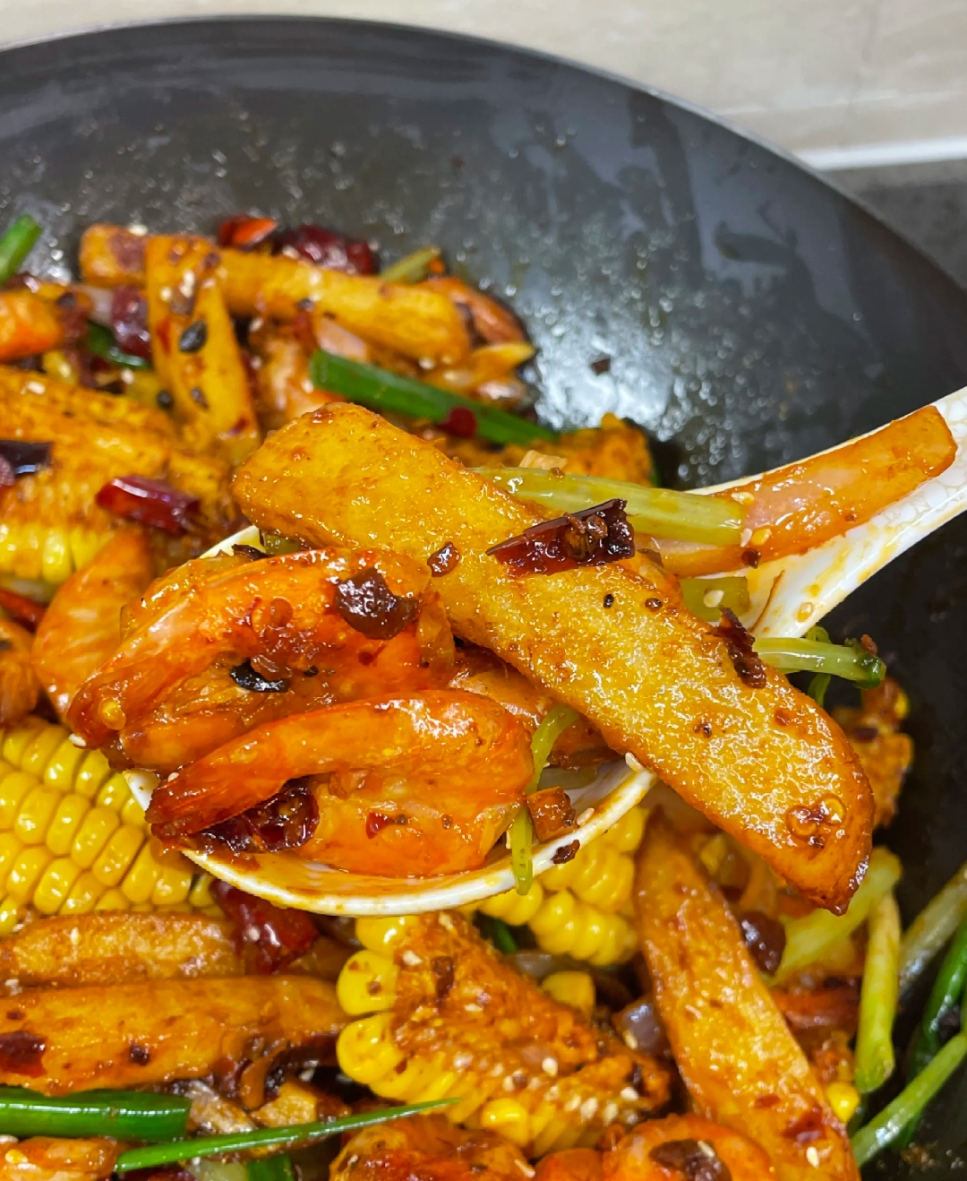 香辣干锅虾是一道让人垂涎欲滴的美食,金黄酥脆的虾肉搭配外酥里嫩的土豆条,再配上香辣过瘾的调料,每一口都让人欲罢不能。这道菜色香味俱全,不仅美味下饭,制作过程也充满乐趣。下面我们就来详细介绍这道香辣干锅虾的制作方法,让你在家也能轻松做出餐厅级的味道。
