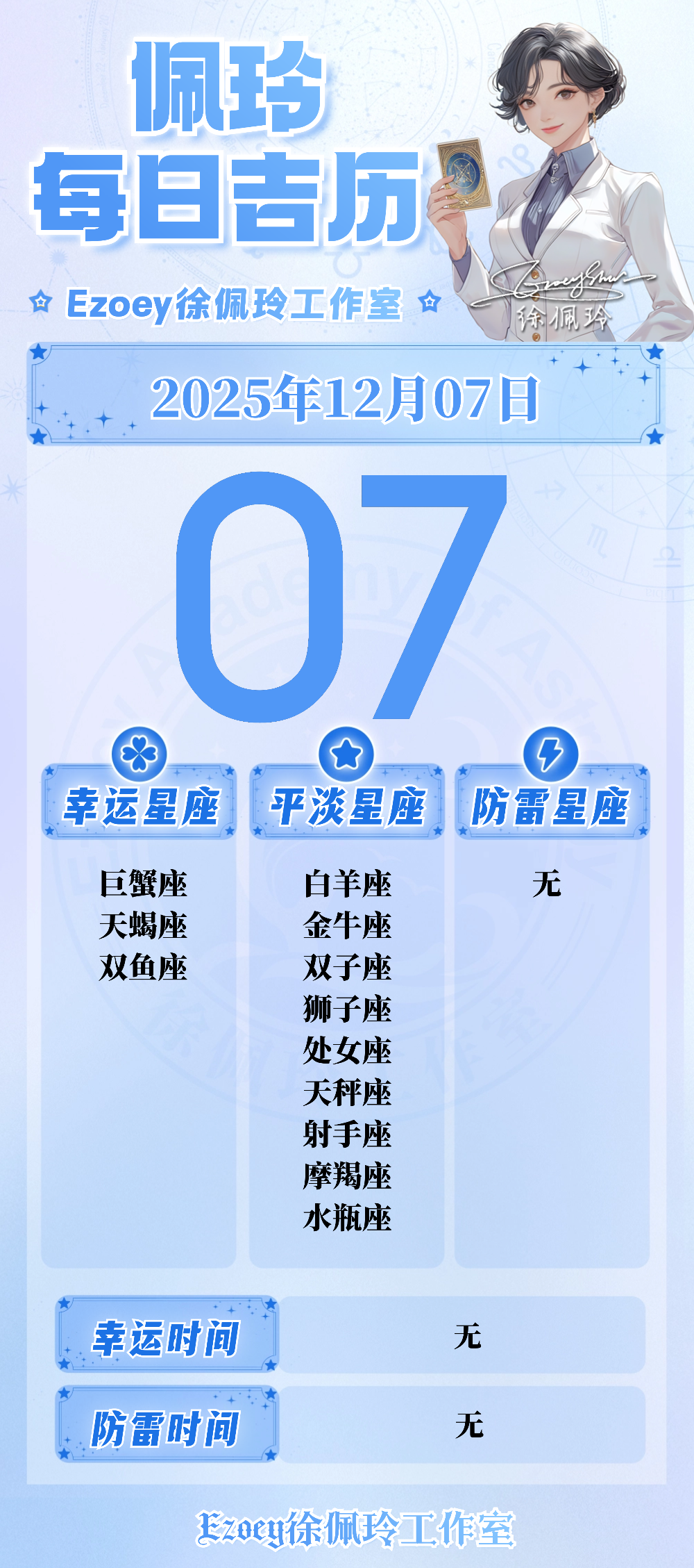 【12.7日播报】温馨温暖日 幸运星座:巨蟹座、天蝎座、双鱼座——Ezoey徐佩玲25年星座播报