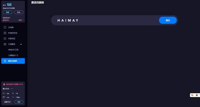 立即体验:安装海马云电脑客户端,在左侧栏【激活兑换码】处输入HAIMAY,即可免费领取体验时长,无缝踏入《解限机》的科幻战场!
