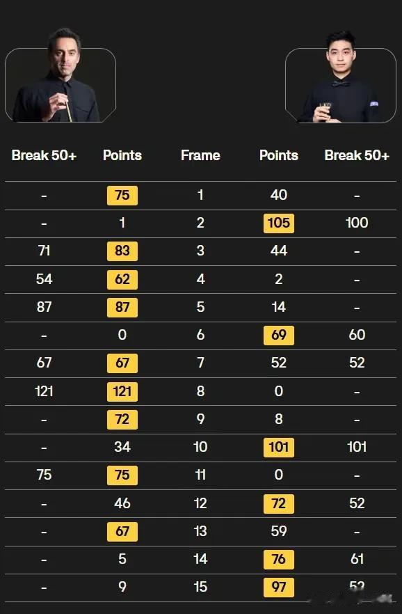 小斯打出了8杆单杆50+,其中有2杆破百。
