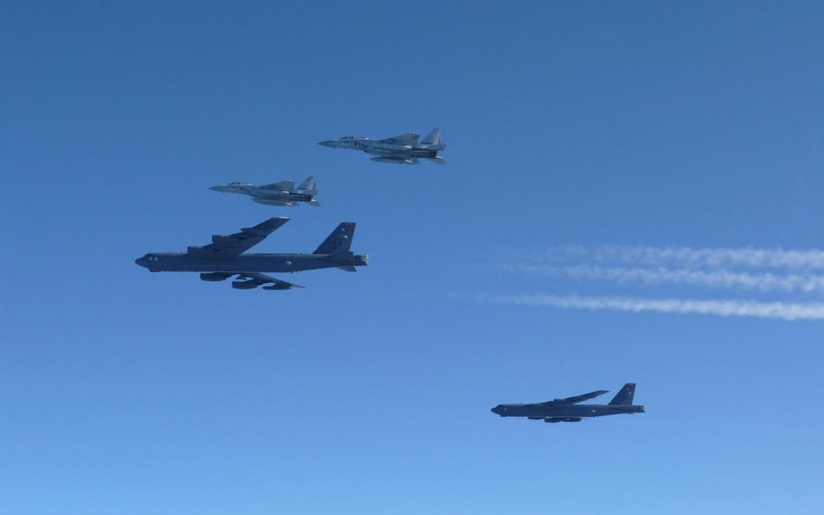就比如,11日当天,日本防卫省宣布,美国可携带核武器的轰炸机,与日本战斗机10日一同飞越了日本海。