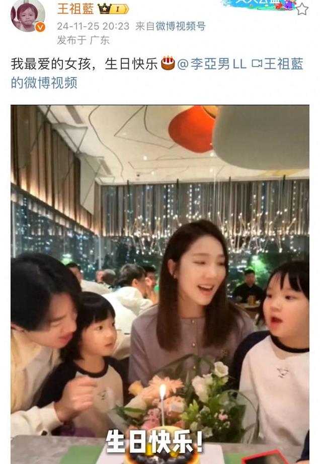 11月25日,是李亚男40岁生日,王祖蓝在社交平台分享了为老婆庆生的温馨画面,并配文“我最爱的女孩,生日快乐”。