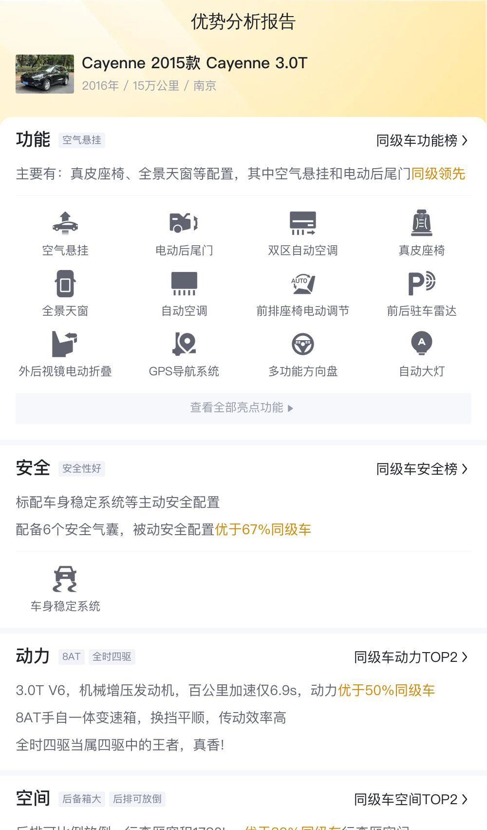 此外,我们还需要考虑用车成本。根据估算,这辆Cayenne的年均用车成本大约在2.2万元左右,其中保养费用约为4500元。这对于一辆豪华SUV来说,属于正常水平。