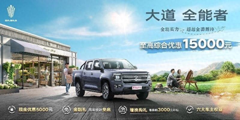随着九月的悄然来临,被誉为 “中国皮卡全场景专家” 的江铃大道,为广大消费者精心筹备了一系列丰厚诱人的购车优惠活动。刚刚升级的2024 款大道全能者就带来了至高 15000 元的优惠。