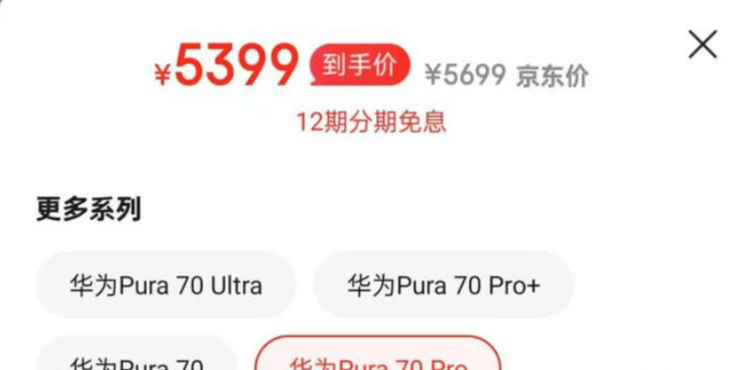 现在某东官方店铺里,Pura70 Pro 只要 5399 元。