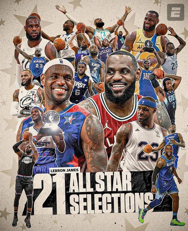 NBA官方公布了本赛季全明星首发阵容,其中西部5人分别是,库里,亚历山大,杜兰特,詹姆斯和约基奇,东部5人分别是,布伦森,米切尔,塔图姆,字母哥和唐斯。西部赛区这边,阵容可谓相当豪华,詹库杜三大老派超级巨星再度携手,三人虽然年龄都不小了,但仍具备一支球队核心球员的实力。这也是NBA历史第一次出现,三名35岁以上球员,同时入选全明星首发。对于詹姆斯而言,他也创造历史,成为历史首位21次入选全明星的球员,且全部入选首发阵容,同时,詹姆斯也成为历史首位在40岁及以后的年龄能够入选全明星首发的球员。