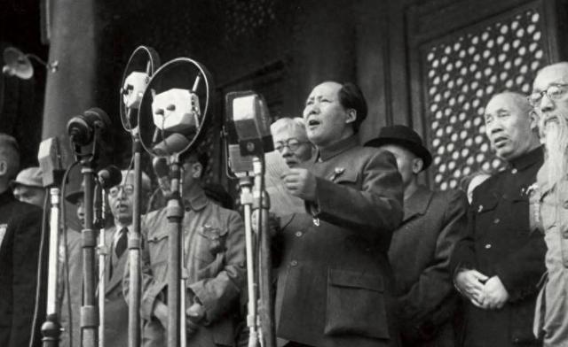 他还在讲话结束时高呼口号:“庆贺中华人民共和国的成立!”