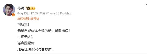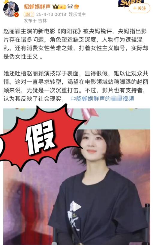 搜狐娱乐讯 4月14日,赵丽颖御用造型师马锐在微博发布铿锵有力的声明,以"真相无人知,谣言四起传"为题,针对近日"央媒批评赵丽颖演技"的虚假信息正面亮剑。这位与赵丽颖合作超十年的金牌搭档,用三个感叹号直击网络乱象:"别尬黑!拒绝不实消息!守护演员心血!"配图中赵丽颖在电影《向阳·花》的监狱戏份花絮照引发热议。
