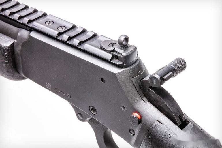 除了优化枪管设计,马林还调研了配件市场,为这款枪配备了现代化的瞄准系统。他们选用了XS瞄准具公司的杠杆导轨套件,这套件包括一个集成的鬼环式缺口照门和一个带白色条纹的窄准星。准星特意设计得高一点,这样就能和更高的照门配合使用。额外的高度也让机械瞄具能和大多数消音器兼容,所以不管在导轨上安装什么光学瞄准镜或红点瞄准镜,都能有机械瞄具作为备用。