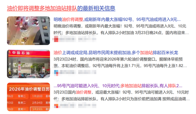 你见过凌晨加油站排队的壮观场面吗?几百米双闪车队,一等就是两小时——不为别的,就因为油价又要涨了。深夜的加油站全是车,亮着双闪的队伍蜿蜒几百米,车主王先生排了俩小时还没轮到,苦笑说 “能省一点是一点”。上海、广州、成都…… 全国多地都在上演这幕 “抢油大戏”。