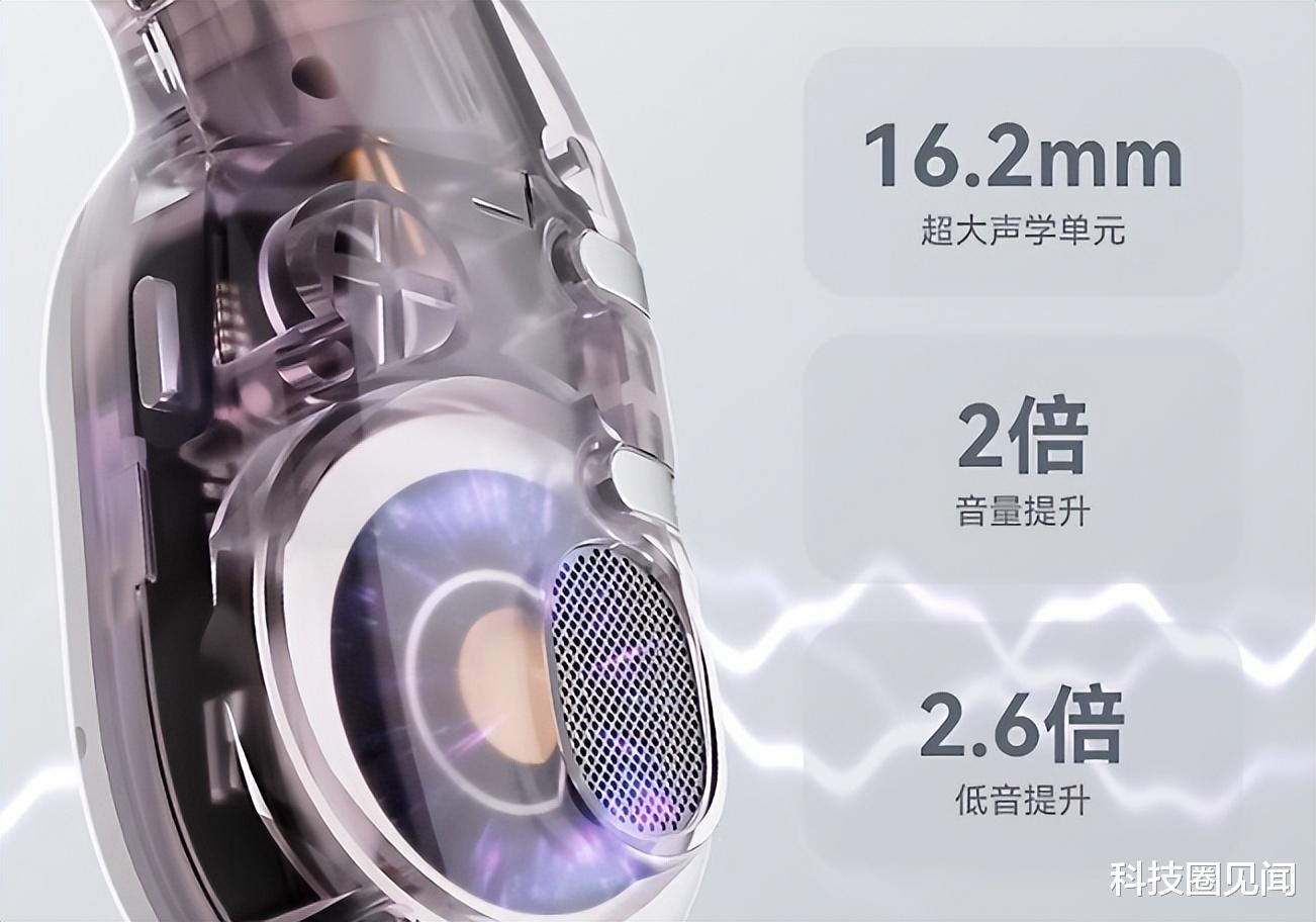 音质方面:16mm 超高灵敏双磁路单元配合 TPU 复合膜片,解析力出色且音色还原细腻;双低音算法则强化了低频表现,使其更浑厚有弹性,有效改善开放式耳机低音不足的问题。中高频清晰通透,人声温润,整体听感均衡,无论是哪种音乐风格,都能较好适配。