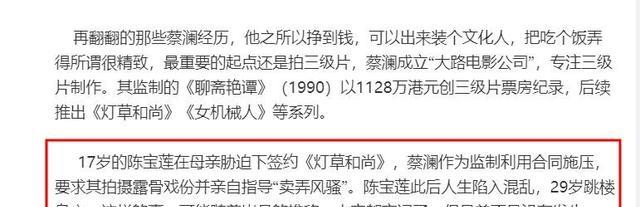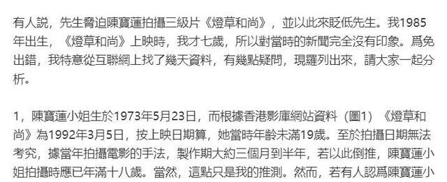 而且提到已故的陈宝莲,说当时她拍风月片时还未成年。