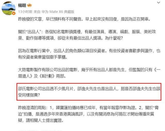 另外,杨翱还指出,当时陈宝莲拍片的时候已经成年,并有相关媒体报道。