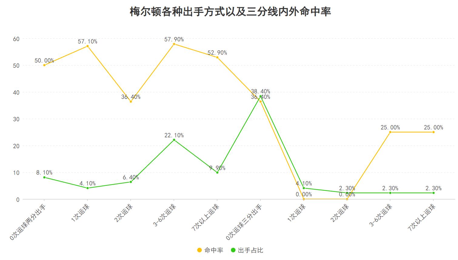 在联盟场均出战20分钟以上的球员里, 梅尔顿在场时19.8的净效率也高居联盟第一,这些可以表明若论在场时的正面作用梅尔顿是联盟各个球队主力球员里的最强,在一支球队战绩为联盟中游的球队里他会有这样的在场作用更加难得,那么梅尔顿到底凭借什么做到作用巨大的呢?
