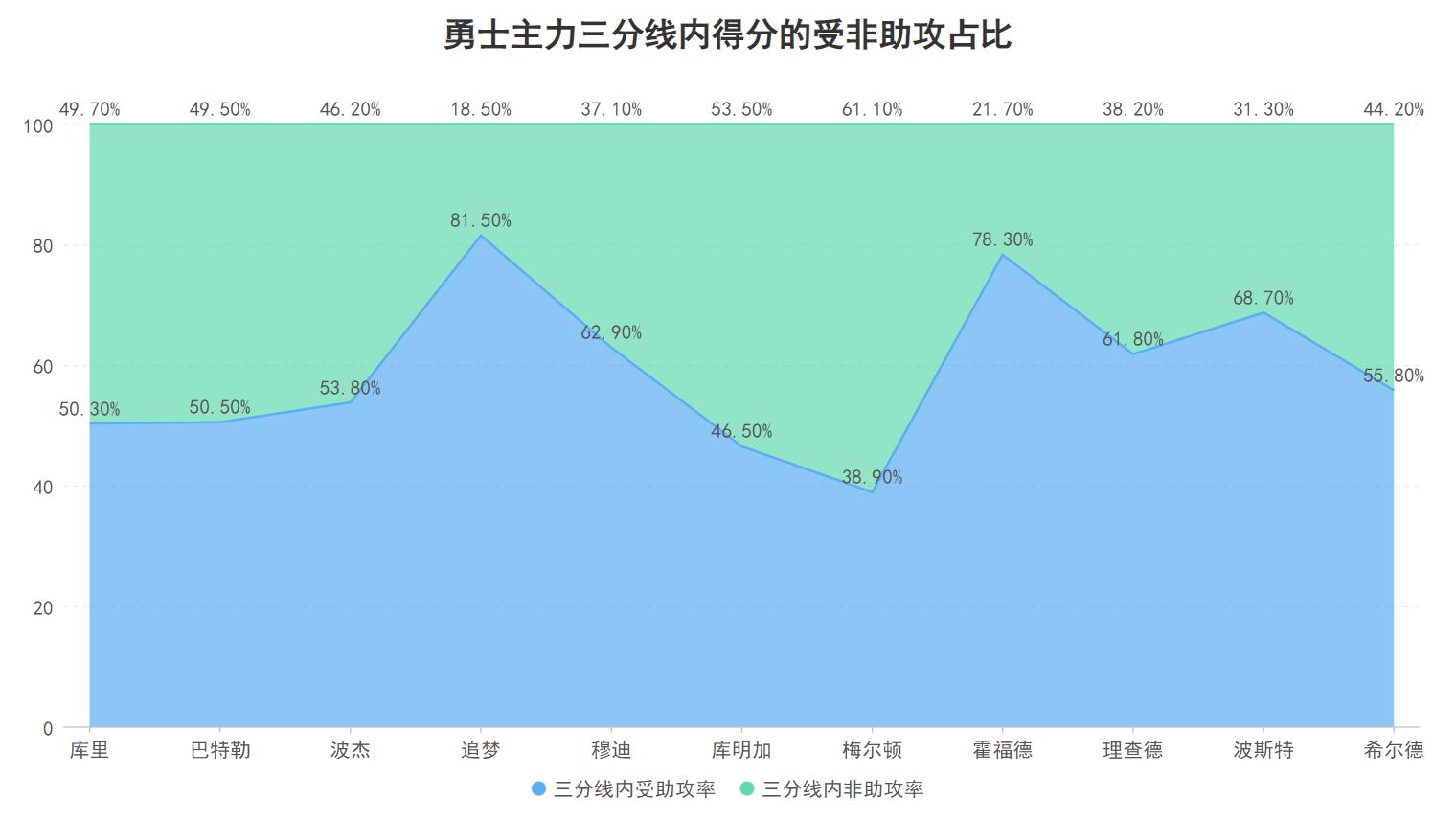 除了三分线外可以接球就投外,他本赛季三分线内的得分非助攻率高达61.1%高居勇士场均出战15分钟以上球员里的第一,这意味着他其实是充当了一个不算高效的硬解点,虽然个人进攻不算高效但替补出场的他也错过了最强的对手阵容,错峰出行令他像极了昔日的吉诺比利,而能打好第二阵容充分弥补巴特勒受伤带来的缺失也令勇士不至于完全失去希望。