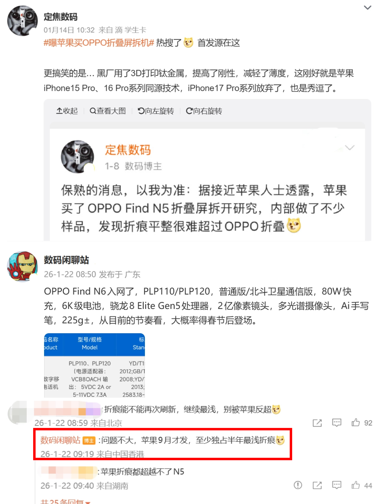 毕竟国产品牌卷了这么多年,先发优势还是有的,技术护城河这么多年下来也早就安排到位了。之前就传出苹果偷师OPPO,买了OPPO Find N5回去研究折痕控制,今年的OPPO Find N6还更狠,据说要首发无折痕内屏,现在已经入网了,马上就要发布了,领先苹果独占半年蕞浅折痕这是没跑了吧?