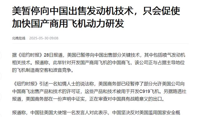 《美暂停向中国出售发动机技术,只会促使加快国产商用飞机动力研发》京报网