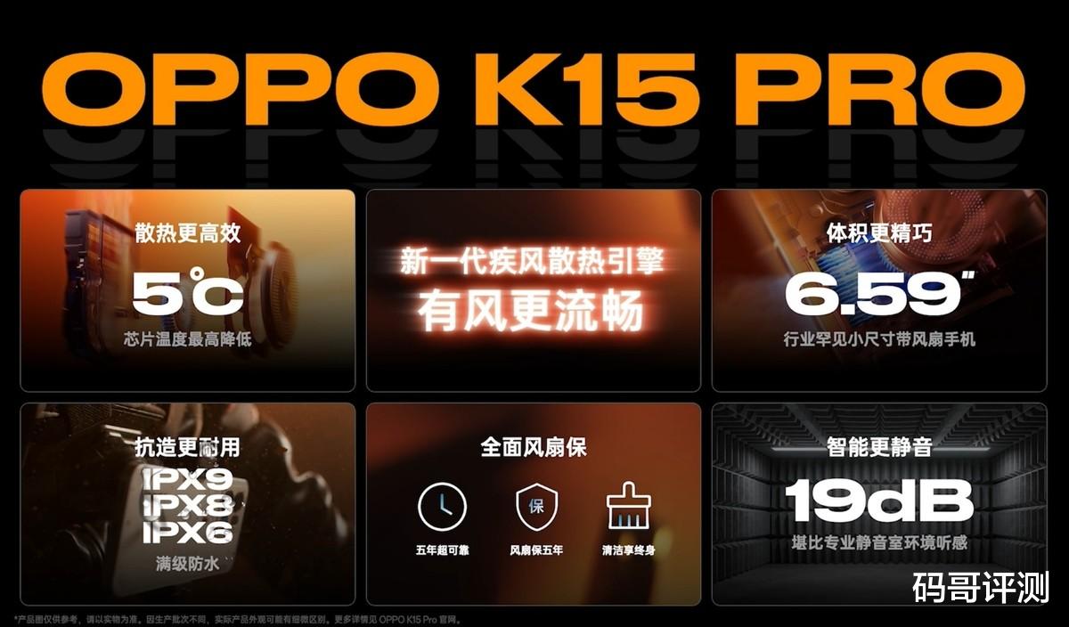 耐用性方面,新一代疾风散热引擎升级三重防尘强化设计,风扇轴承借鉴矿山机械密封润滑构造;扇叶新增防尘环设计,进出风口增加金属防尘网,通过5年运行寿命测试。同时,OPPO K15 Pro 系列在还在上代满级防水能力的基础上,整机通过了 IP69 满级防尘防水大满贯考验,抗造更耐用。