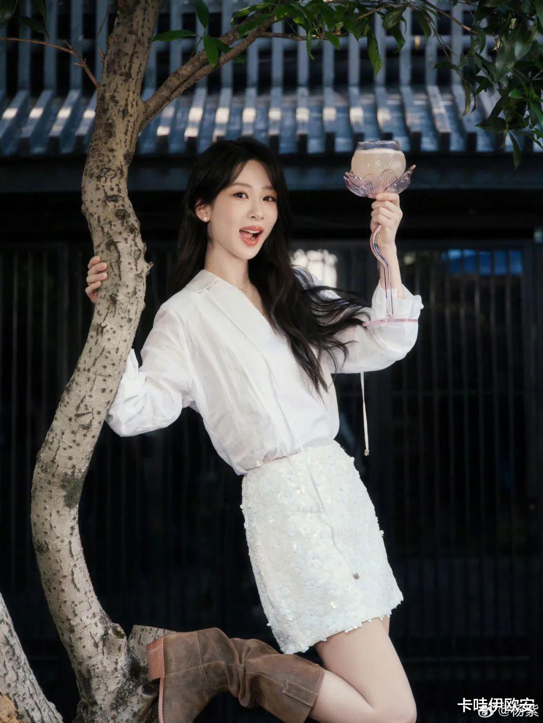 不止如此,杨紫在室外拍摄时大胆露香肩,小长腿也悄悄上线,甜美中带点小性感。她时而仰头微笑,时而俏皮摆 pose,怎么看都透着满满的灵气与松弛感,整组照片简直可以直接拿去做夏日写真封面。