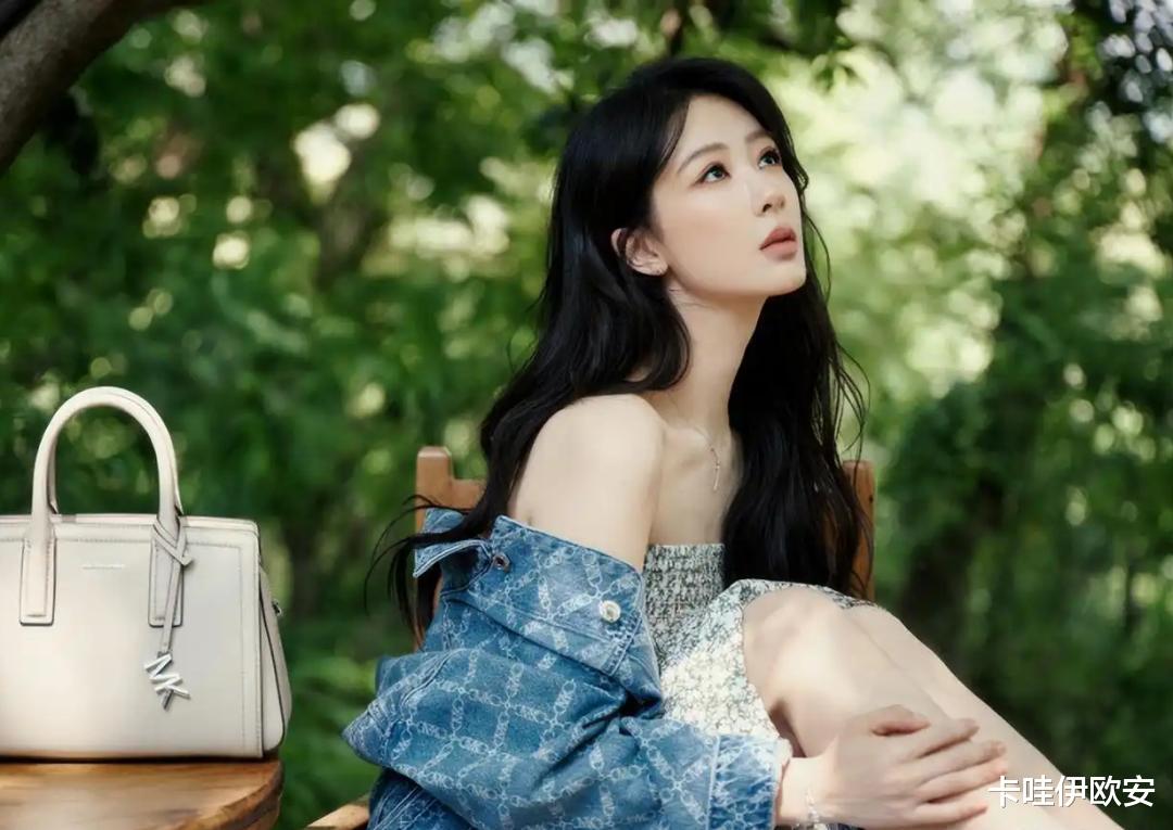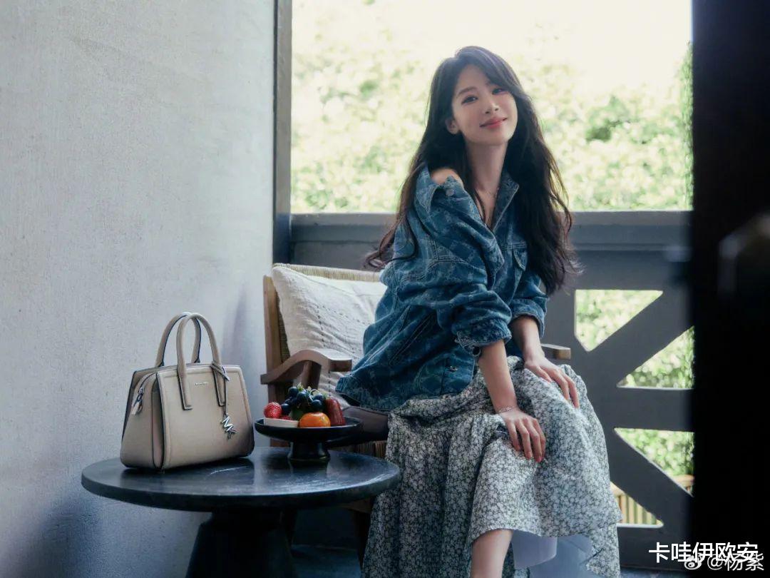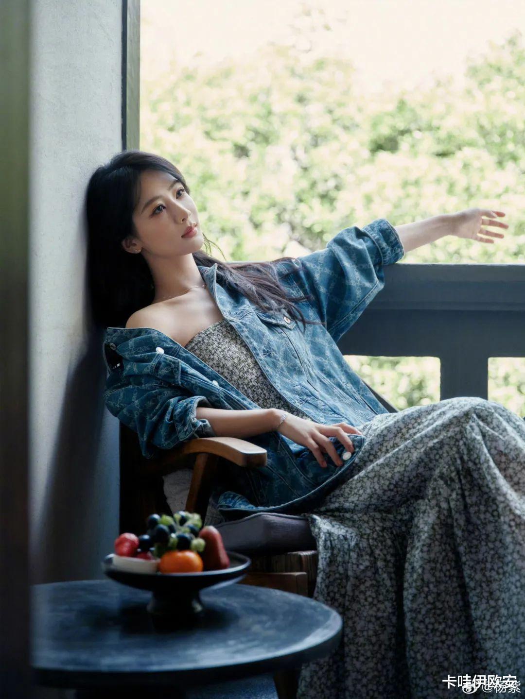 特别是侧面镜头下,杨紫的小巴掌脸、流畅下颌线、优越天鹅颈和锁骨线条,简直杀伤力爆表!她坐在绿荫下,牛仔外套半披着,露出香肩和白到发光的冷白皮,既有少女的清新,又多了一丝小女人的性感,美得自然又高级。