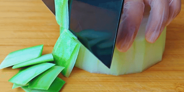 1、先来处理冬瓜,冬瓜去皮后把瓜瓤给挖掉,挖掉的冬瓜瓤和皮不要丢掉,可以留着晒干后煮水喝,清热又解暑。