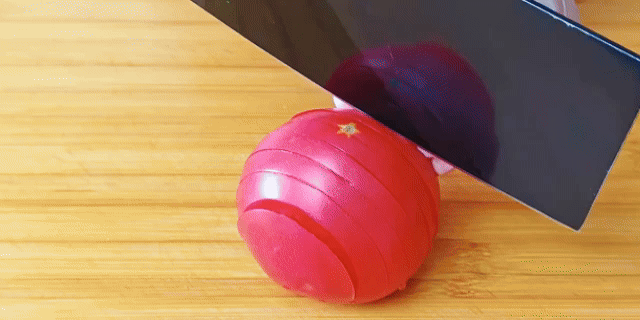 3、腌冬瓜的空隙别闲着准备其它食材,西红柿切丁,很多朋友不会切,这里也分享给大家西红柿切丁的小技巧,就是纵向横向的切,不要切断底部,然后横过来再切就可以很轻松的切出丁了,也不用担心弄的汁水到处都是。