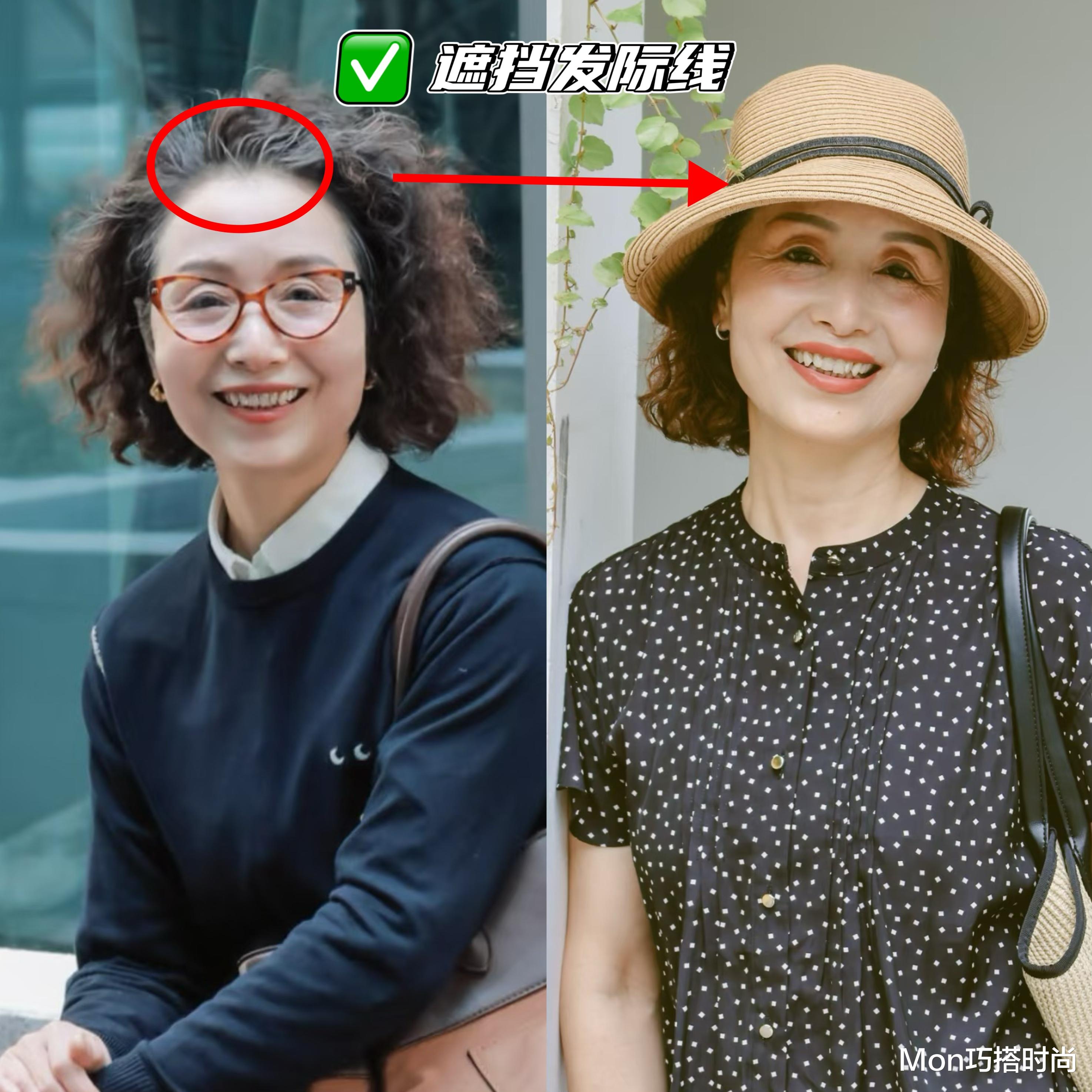 对比02.戴帽子可以遮盖发际线和白发,显年轻