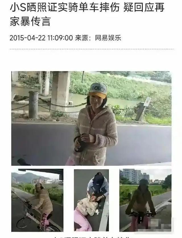 2013 - 2015 年间,小 S 多次被拍到身上有淤青,她解释是骑车摔伤。