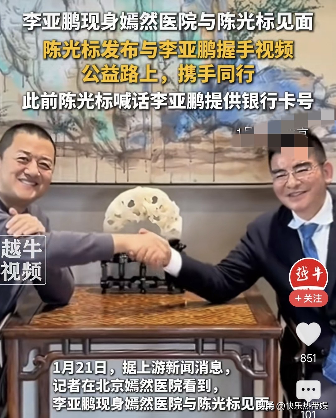 目前,这件事情也在往更好的方向发展,越来越越多的人关注。一开始只是普通人,排起长队去医院现场捐款,如今又有陈光标亲自与李亚鹏碰面,表示愿意全力支持李亚鹏。