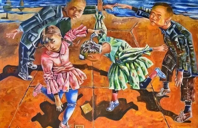 在斑驳的泥墙上涂涂画画,满身都是颜料印子。