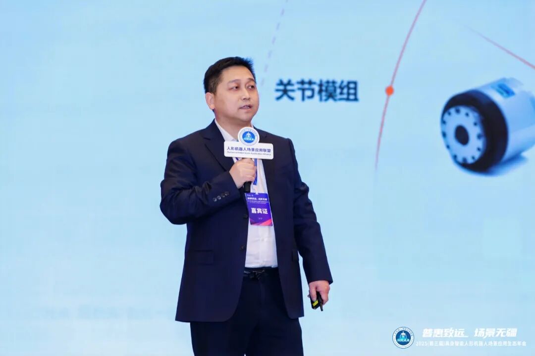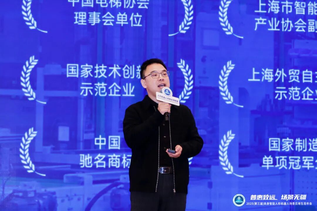 人形机器人场景应用联盟秘书长李进科为获奖企业颁奖
