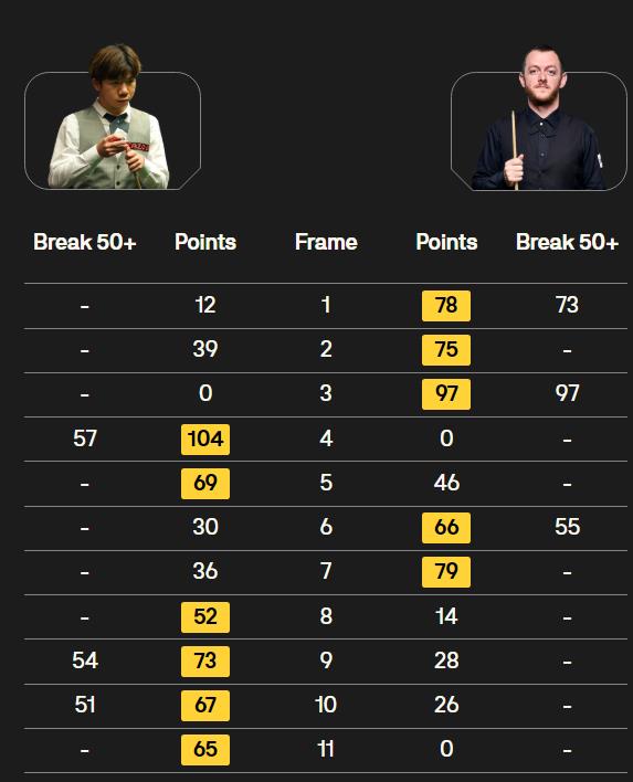 第二场半决赛,雷佩凡挑战马克·艾伦,后者是四强中唯一的种子选手,当然是夺冠大热门。开场后,马克·艾伦确实表现不俗,前三局打出单杆73分和97分,取得3-0领先。在雷佩凡连追两局后,马克·艾伦又连赢两局以5-2拿到赛点,可以说胜利在望了。不过雷佩凡没有放弃,此后连续在相持局面中把握住机会,加上马克·艾伦失误增多,雷佩凡将比赛拖入决胜局。