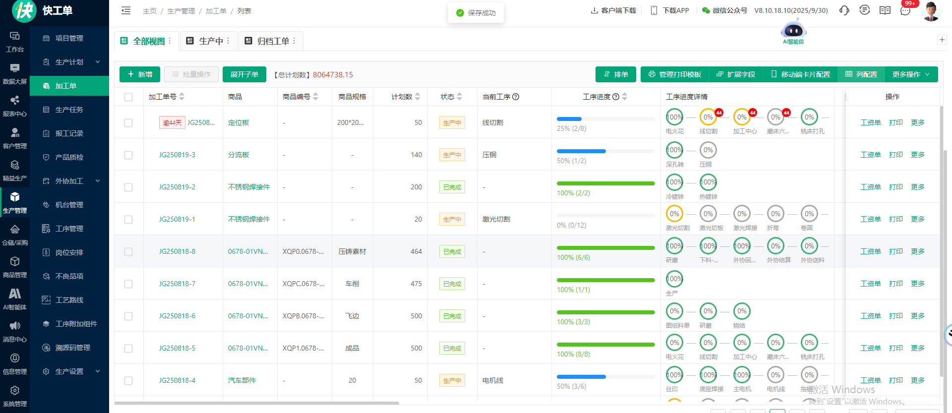 MES:构建工厂级数据金字塔,包含设备层(OEE)、工艺层(SPC)、管理层(KPI)等多维指标体系,数据关联性强。