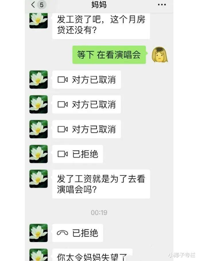 “发了工资就是为了去看演唱会吗?你太令妈妈失望了。”