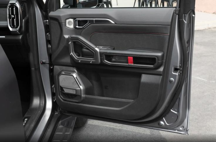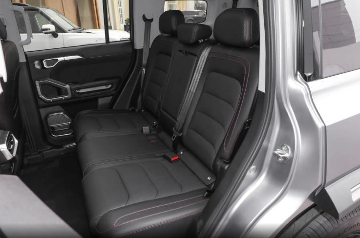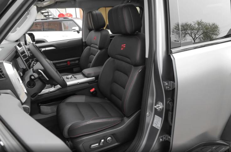 至于座舱智能化,新车采用的是15.6英寸中控屏,内置骁龙8155芯片,尝试多个导航地点、音乐及娱乐App之间连续切换,整体表现流畅不卡顿,同时还支持语音交互。不过,有一点值得批评,外后视镜的调节没有预留物理控制按键,只能通过大屏菜单进行调节,虽然步骤不算繁琐,但不如实体按键控制更为直观高效。此外,在系统四驱越野界面中,可以读取的信息有很多,例如俯仰/侧倾角度、胎压、四轮动力输出状态等,特别是指南针和海拔高度,很有老款帕杰罗、陆巡的味道。在座椅舒适性方面,新车也下了不少功夫,座椅填充柔软,手指按压有明显的下陷感,而且前排坐垫长度充足,达到了490mm,对腿部有良好的承托,同时加长版标配前排座椅加热/通风功能。