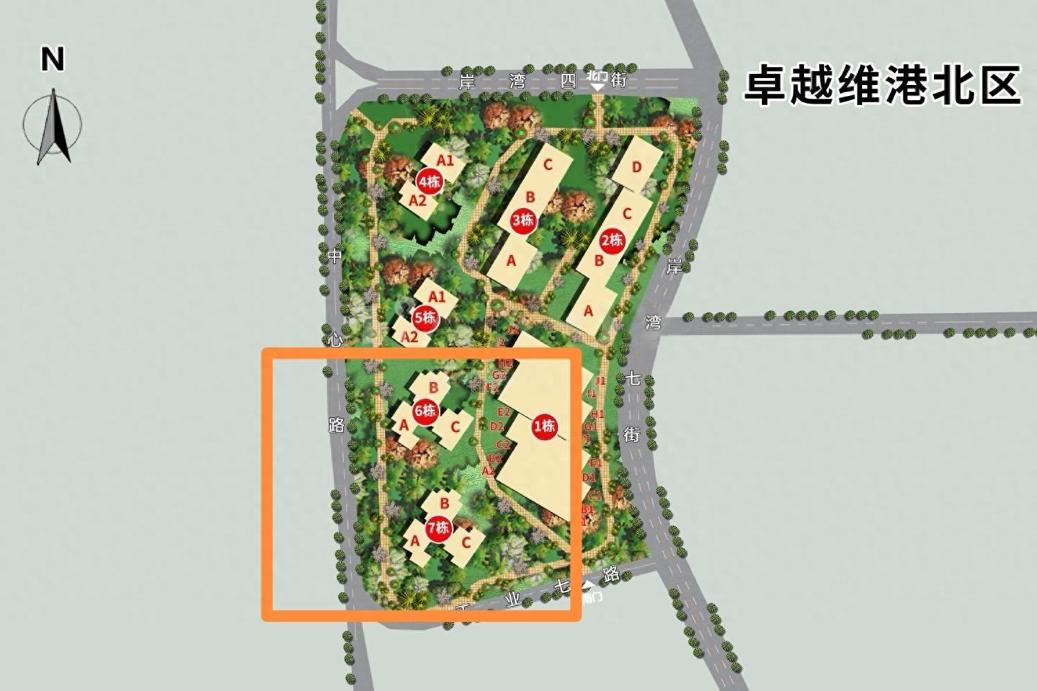 上篇讲维港这个价位段有5个户型,这篇文章讲的3个户型分布在北区6、7栋,属于两梯三户。