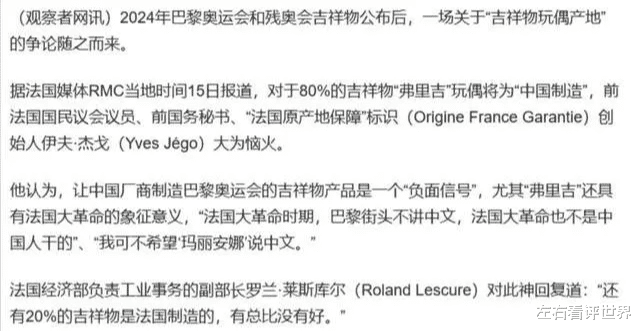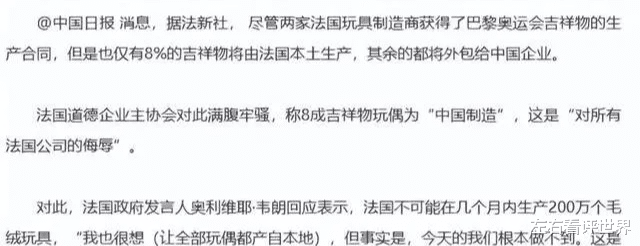 法国某官员对这一现象表达了强烈不满,他认为这是对法国公司的一种侮辱。法国国内的一些协会也持类似观点,认为八成的吉祥物由中国制造是不合适的。实际情况却并非那么简单,背后的经济因素和市场现实值得我们深入探讨。