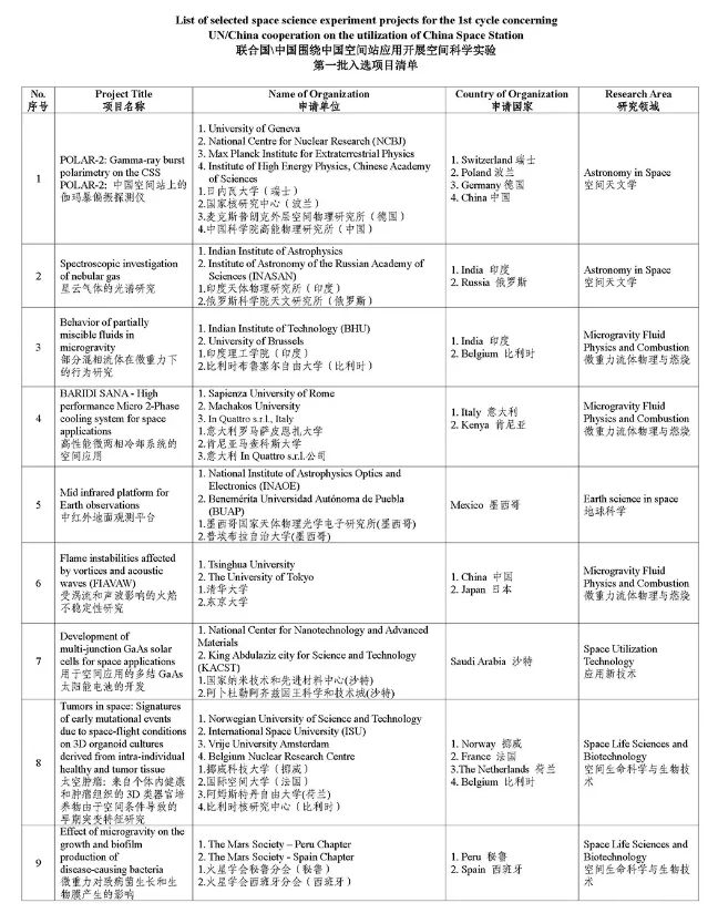 而除了国外航天员加入中国空间站之外,未来中国还将推进更多的项目合作进入中国空间站,并且已经确定了一批次的项目了,那就是印度,日本等17国项目入选了中国空间站合作项目,美国也申请了,但中国拒绝了。