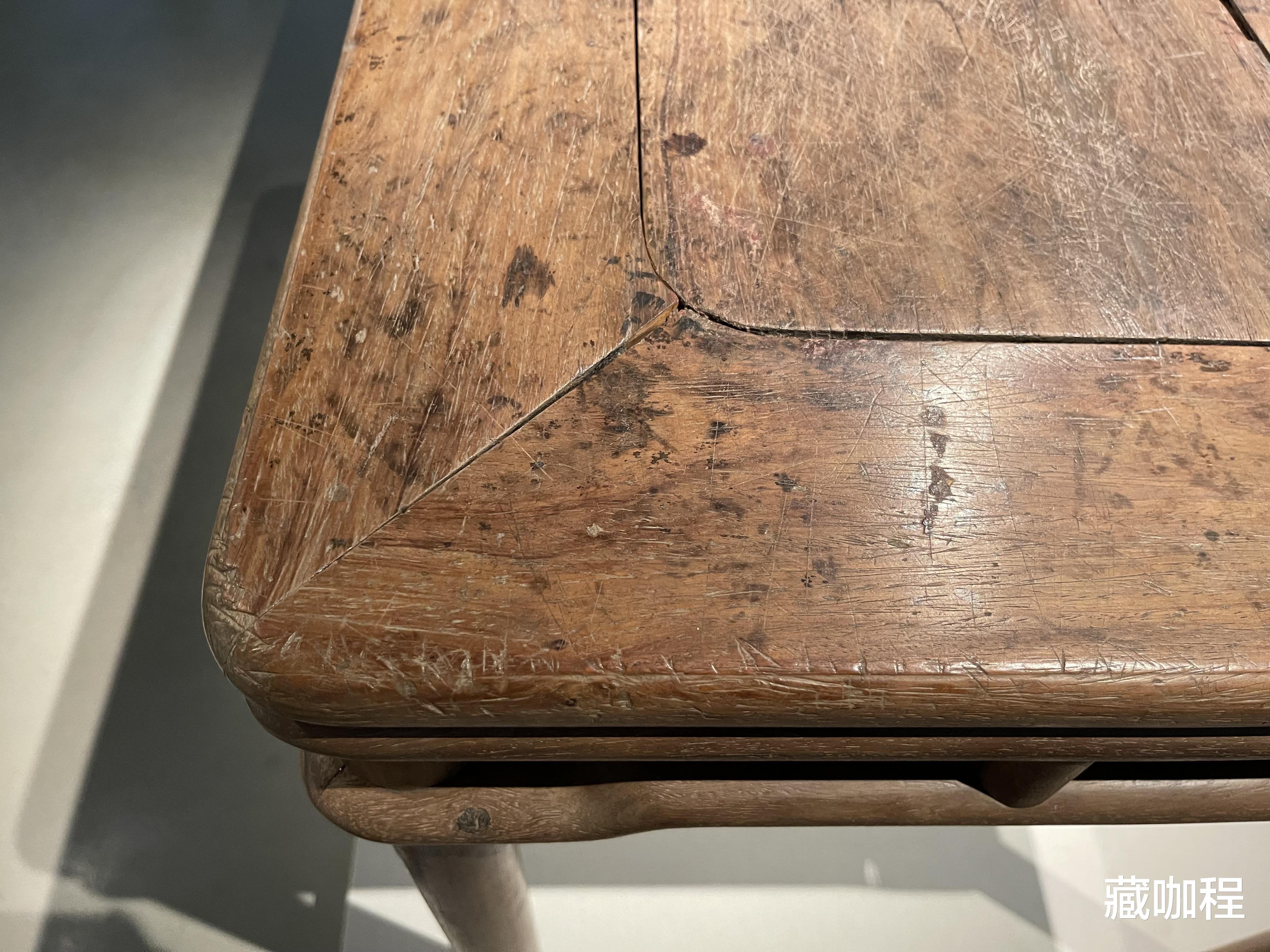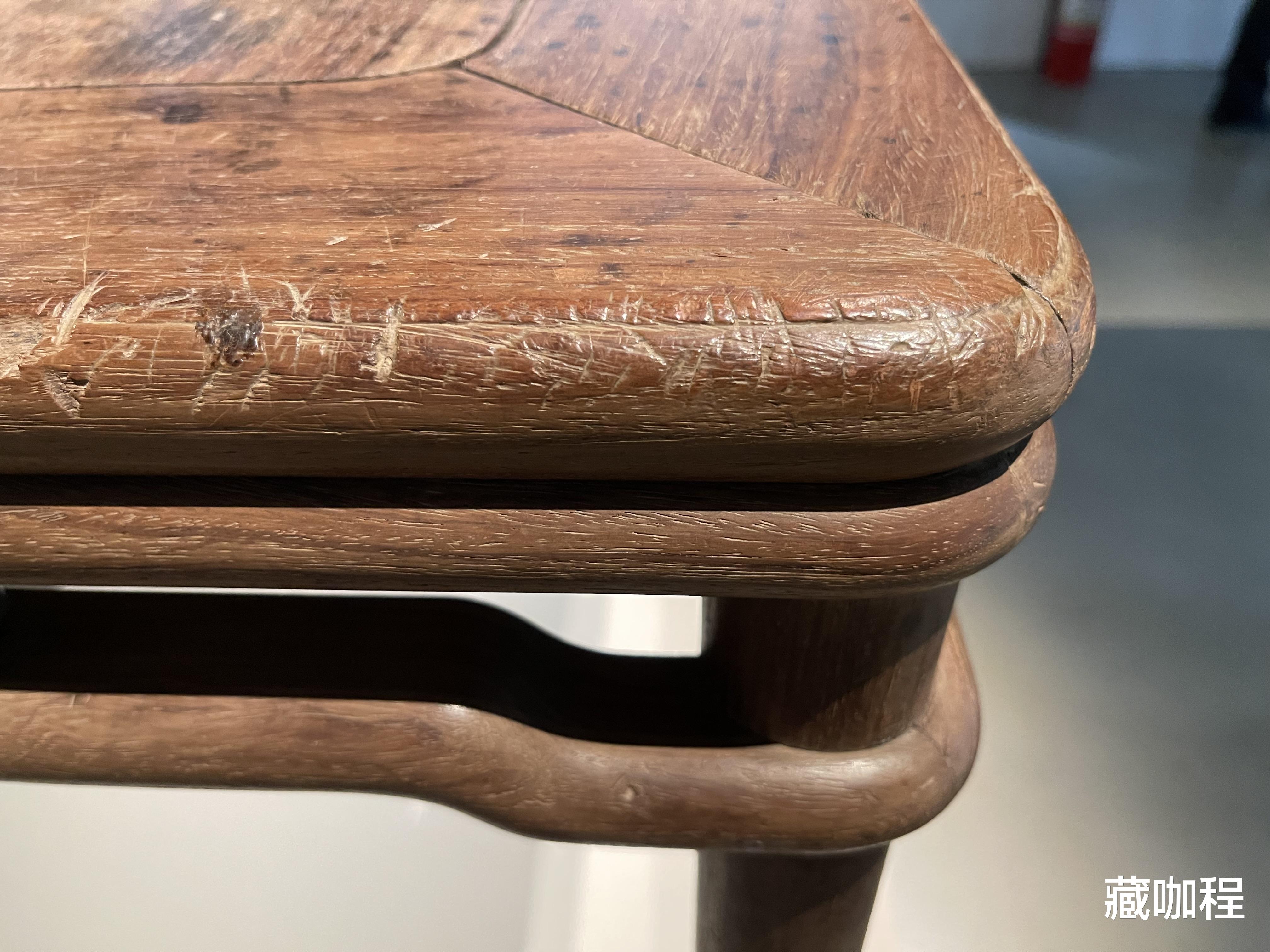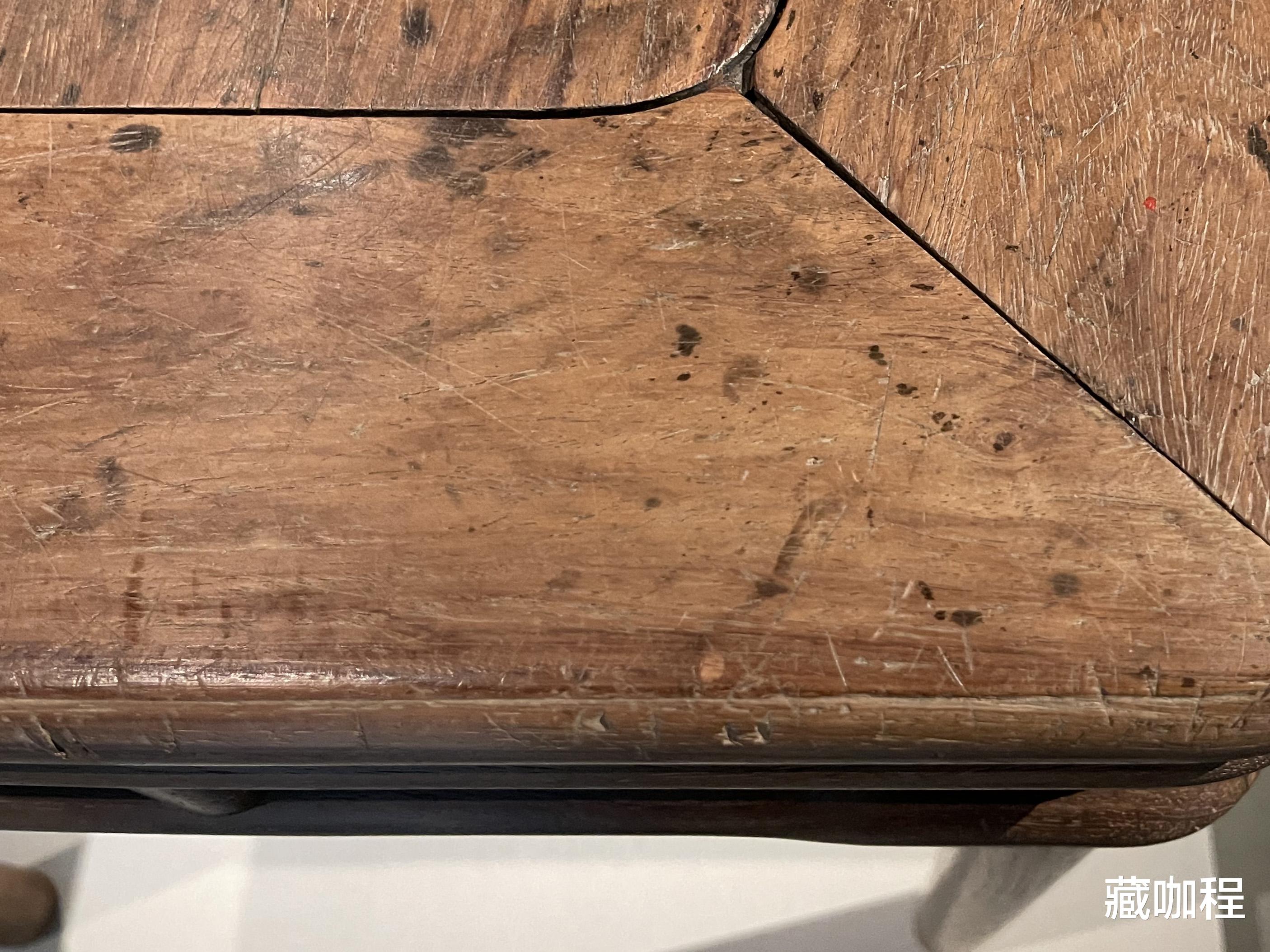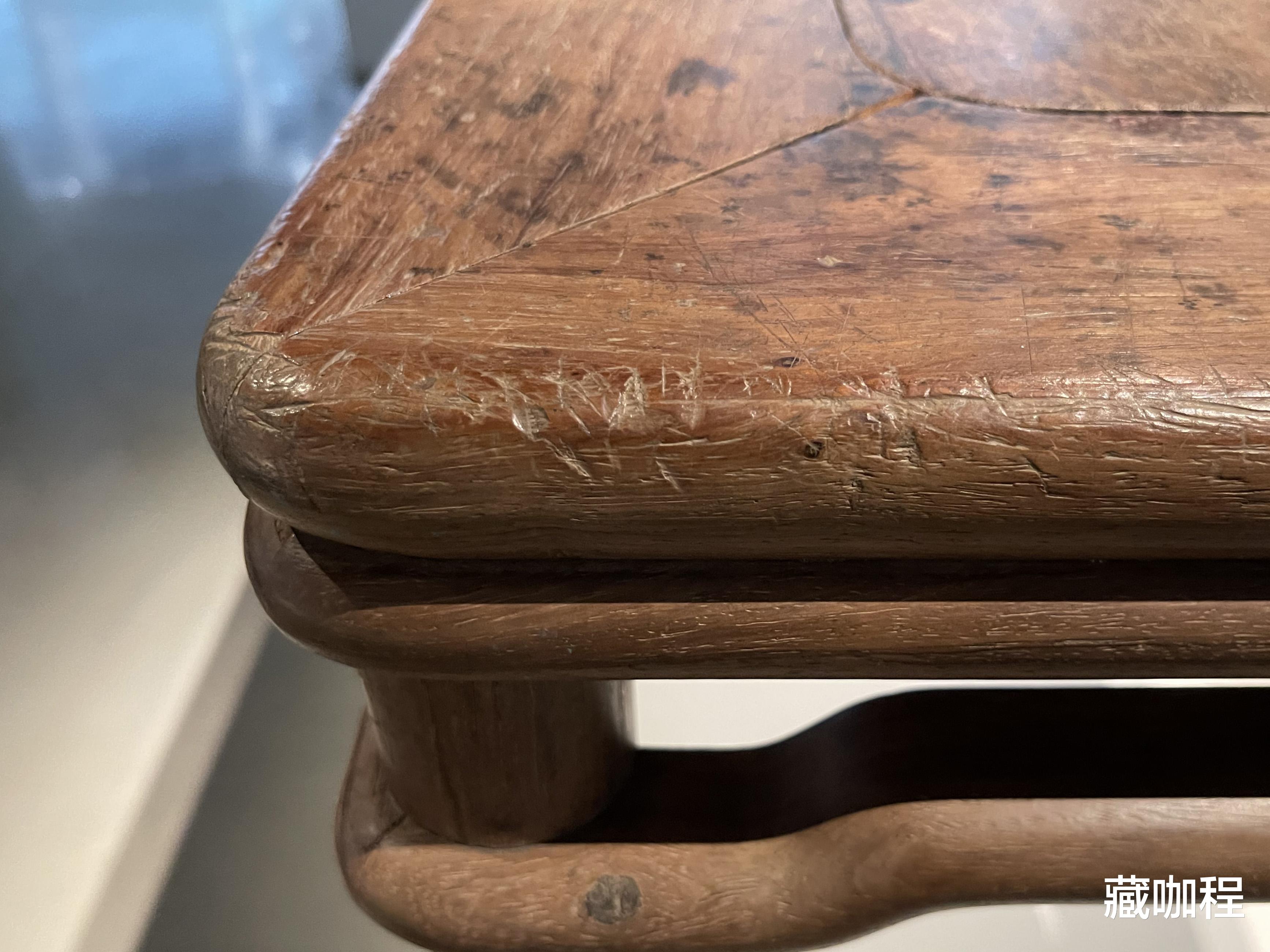 另外,桌子在流传过程中少不了刀斫斧砍,边沿切痕清晰如刻,历经百年依然分明,可见黄花梨木质之坚硬。