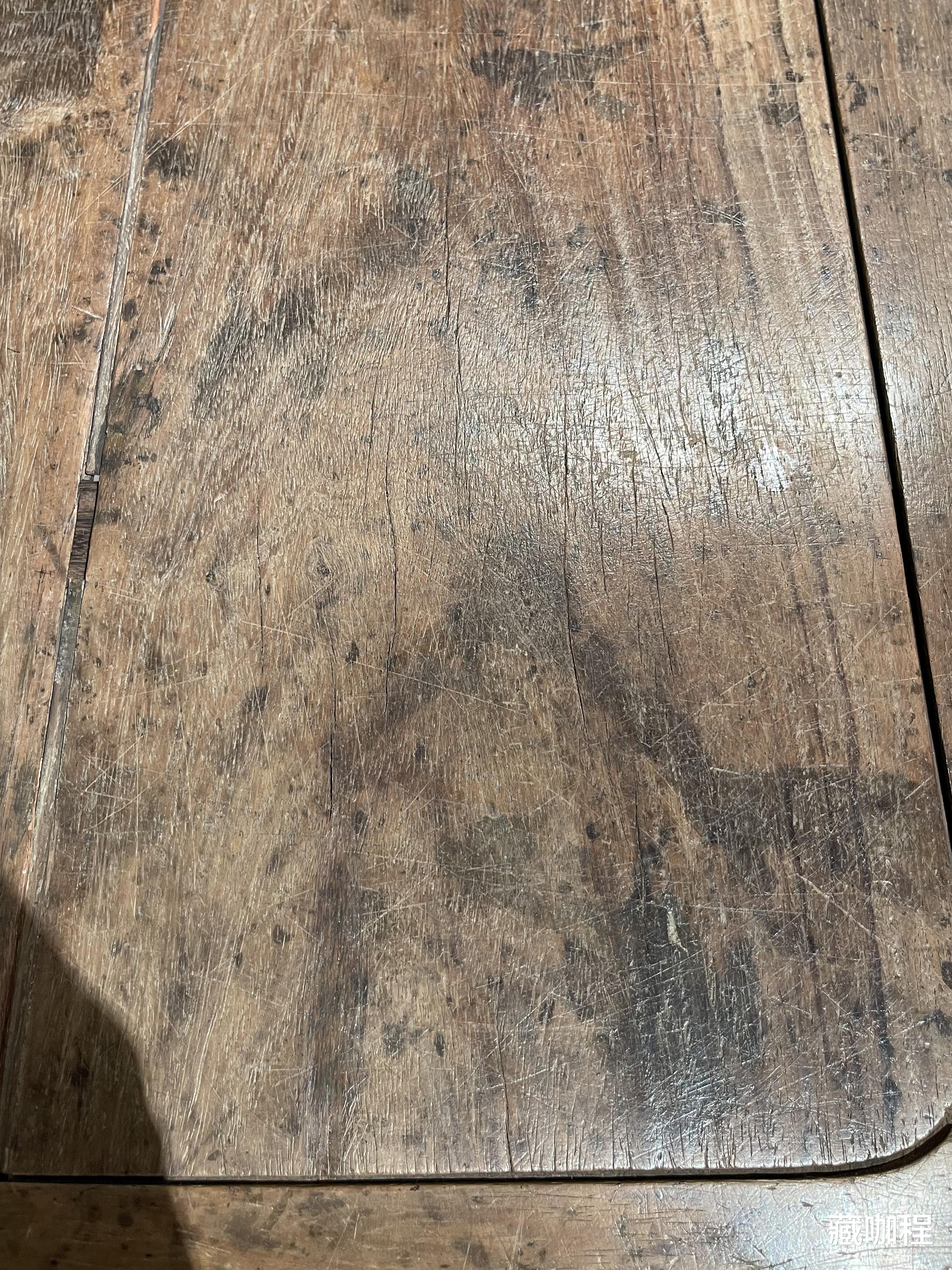 如此质感还离不开木头所富含的充足油分,桌子边角被经常触及的地方,颜色变得深红,和木油由里而外浸润不无关系。