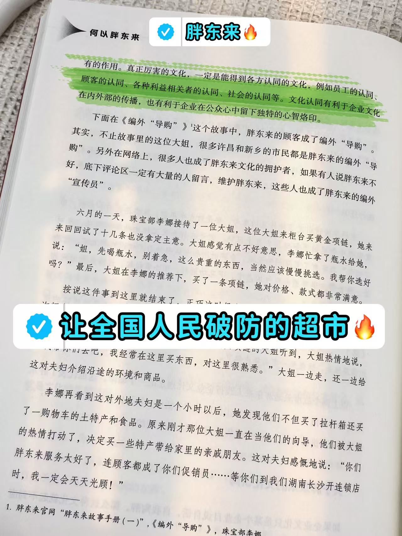 在《编外“导购”》这个故事中,胖东来的顾客成了编外“导购”其实,不止故事里的这位大姐,很多许昌和新乡的市民都是胖东来的编外“导购”。另外在网络上,很多人也成了胖东来文化的拥护者,如果有人说胖东来不好,底下评论区一定有大量的人留言,维护胖东来,这些人也成了胖东来的编外“宣传员”。
