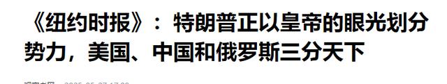 5月26日,《纽约时报》刊发了一篇耐人寻味的报道,引发国际舆论的高度关注。文章称,特朗普或许正试图重塑全球格局,构想一个由美国、中国和俄罗斯主导的“三分天下”的世界。