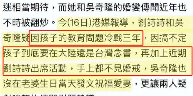 主要因为吴奇隆想让孩子回台湾接受传统教育,刘诗诗则坚持在大陆培养。