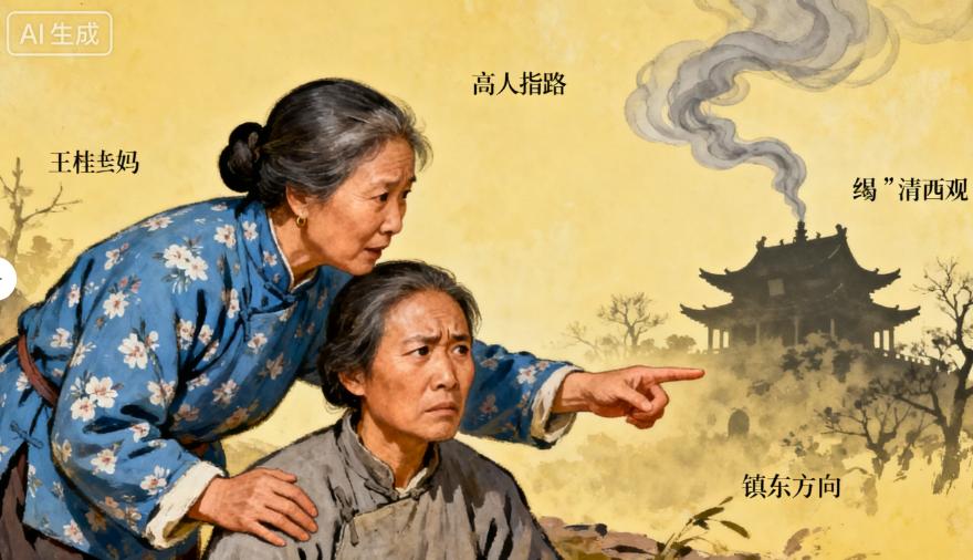第二天一早,天刚蒙蒙亮,赵老实就骑着自行车,带着王桂兰往清虚观赶。清虚观坐落在镇东的山脚下,不大的院子里种着几棵松树,透着股清幽之气。老道长坐在院子里的石凳上,须发皆白,手里拿着一把蒲扇,眼神却很清亮。